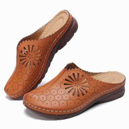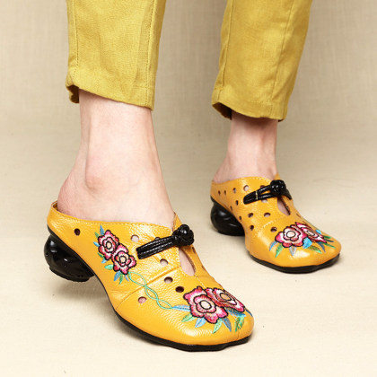 Women's mid heel chunky heel cutout slippers