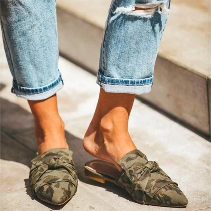 Fashion ladies camouflage pointed low-heel slippers